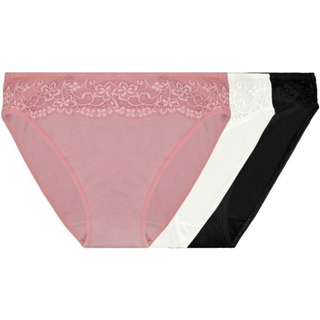 Lot de 3 slips mini premium confort avec Tissu 100% coton et dentelle pour une sensation de bien-être, de confort et avec une touche de beauté.