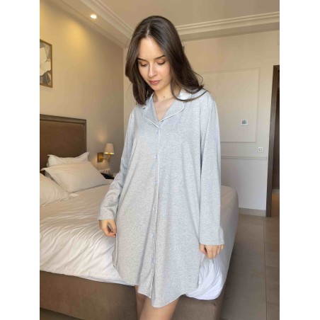 Chemise de nuit boutonnée , col tailleur et manches langues.