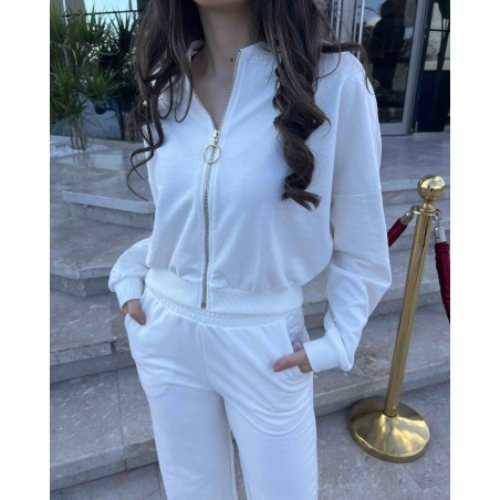 Ensemble en molleton; sweat avec fermeture et pantalon de jogging.