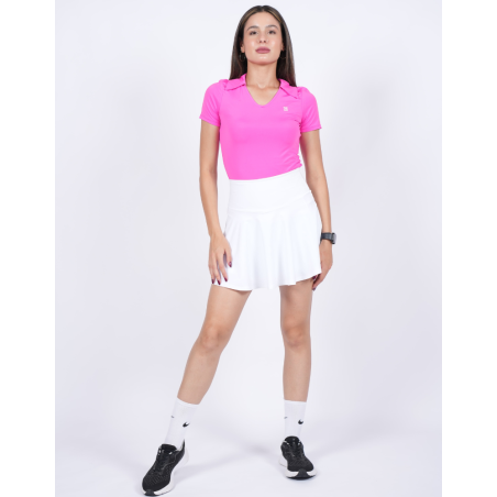 Cette jupe de sport élégante et fonctionnelle est parfaite pour le terrain de tennis, Padel ou pour toute activité sportive. Conçue dans un style cloche flatteur, elle apporte un look dynamique et tendance tout en offrant un confort optimal. La jupe intègre un short intérieur pratique, garantissant une liberté de mouvement et un maintien parfait. Un atout supplémentaire est sa poche discrète, spécialement conçue pour tenir une balle de tennis en toute sécurité. Associez-la avec un haut de sport coloré pour un look moderne et performant.