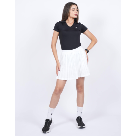 La version blanche de cette jupe plissée offre une alternative lumineuse et élégante. Elle allie le même confort et la même praticité avec un short intérieur et une taille élastiquée pour un ajustement parfait. Idéale pour vos activités sportives, elle assure un style frais et élégant sur le terrain comme en dehors.